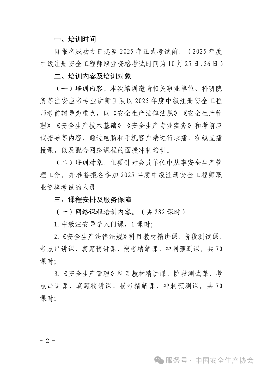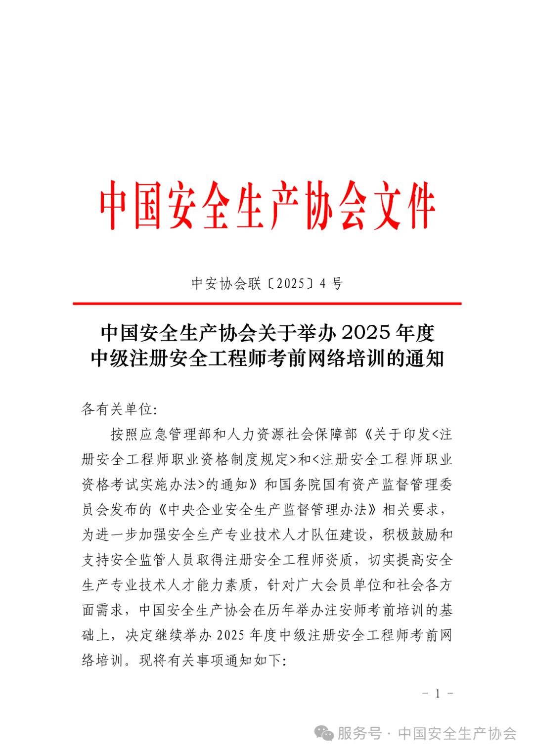 关于举办2025年度中级注册安全工程师考前网络培训的通知