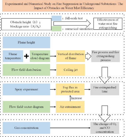 1.Experimental and numerical studies on fire suppression at underground substations: The impact of obstacles on water mist efficiency